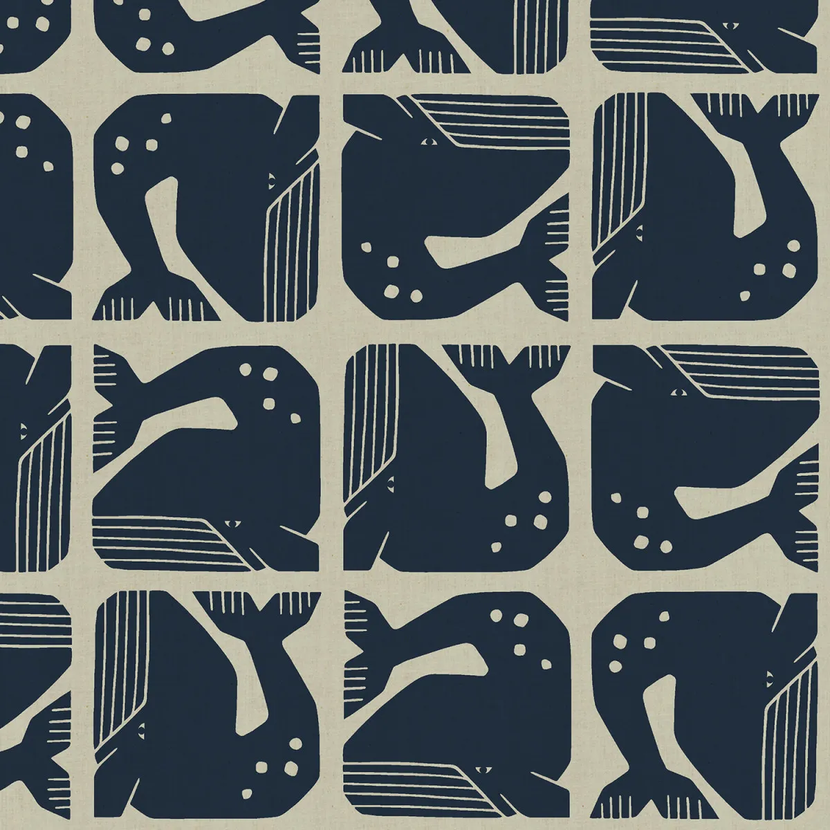 Cotton & Steel - By The Seaside II - Grumpy Whale - Navy Unbleached Canvas Fabric