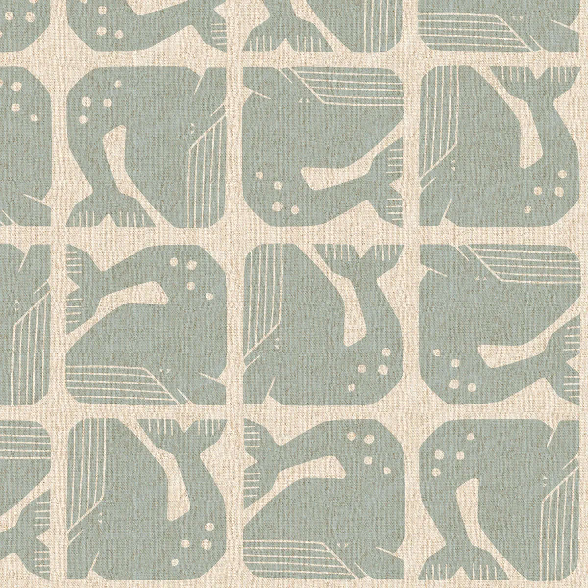 Cotton & Steel - By The Seaside II - Grumpy Whale - Blue-Gray Unbleached Fabric