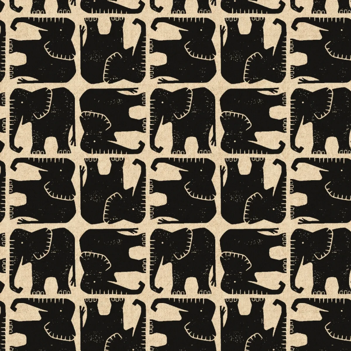 Cotton & Steel - Rising Sun - Jolly Elephant - Black Unbleached Canvas Fabric