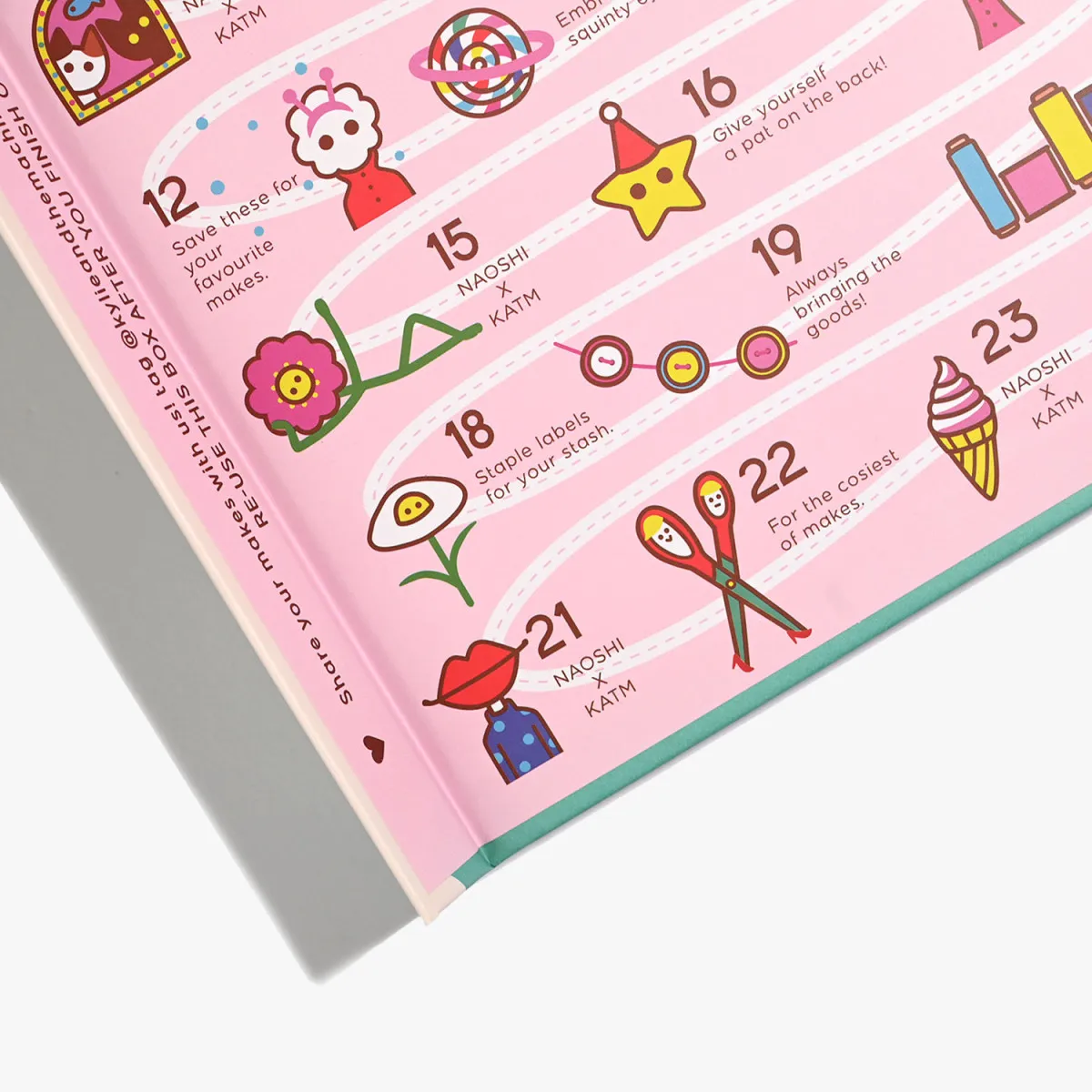 Wir fühlen uns geehrt, mit Naoshi an unserem Adventskalender 2025 zusammengearbeitet zu haben - ihre Figuren aus der Nähwelt sowie ihre Darstellung von Kylie und Kylies Nähzimmer sind absolut einzigartig! Das Cover-Artwork wurde zuerst digital erstellt und dann von Naoshi als Sandkunst umgesetzt. In der Illustration sind die Sandkörner sichtbar – was dieses Projekt zu etwas ganz Besonderem macht.