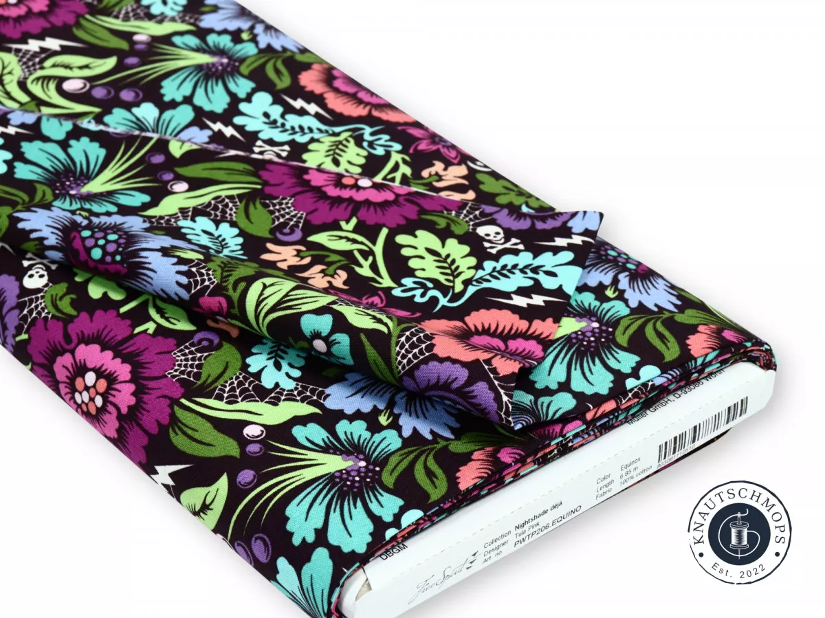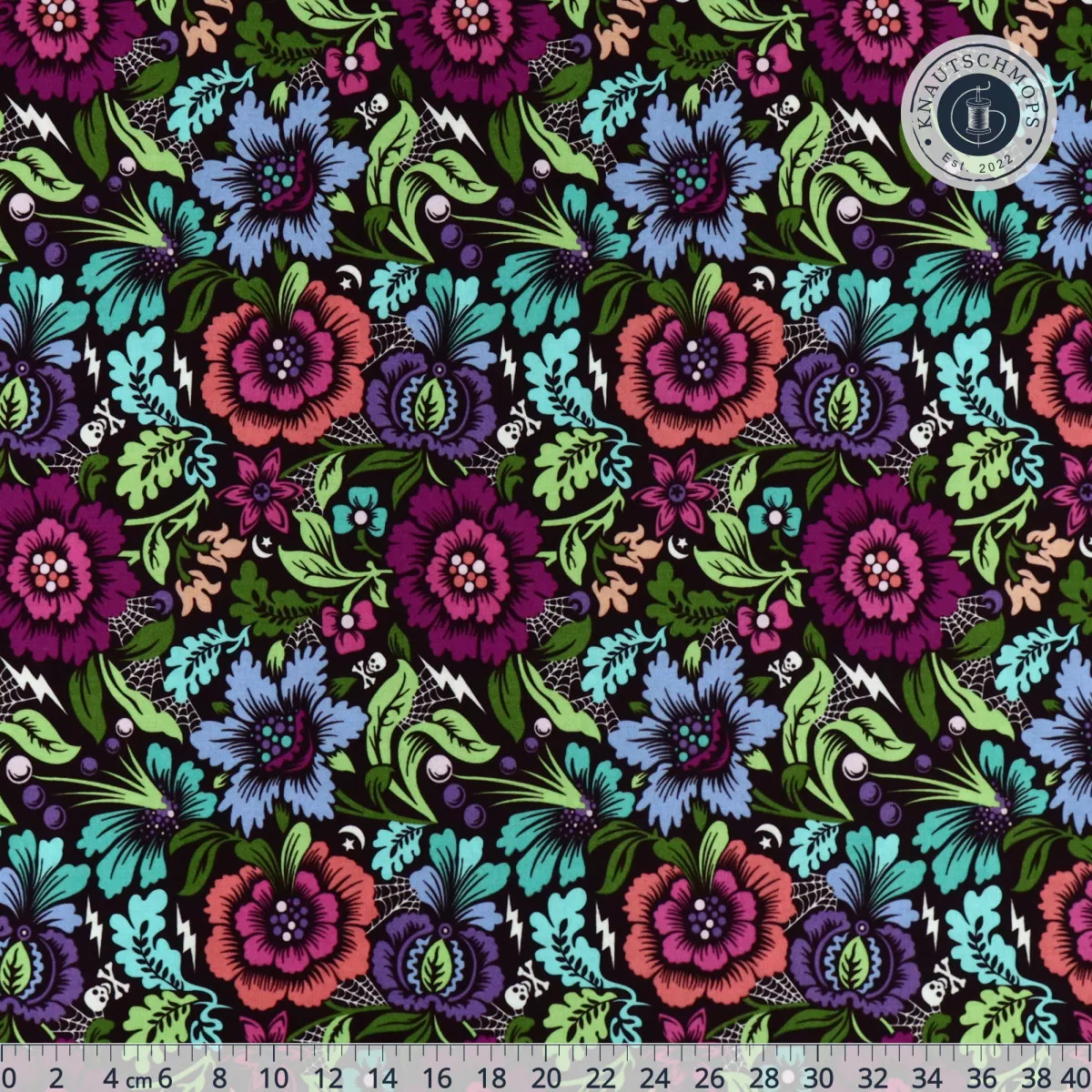 Tula Pink Baumwoll Designerstoff - Nightshade (Déjà Vu) Spider Blossom - Equinox