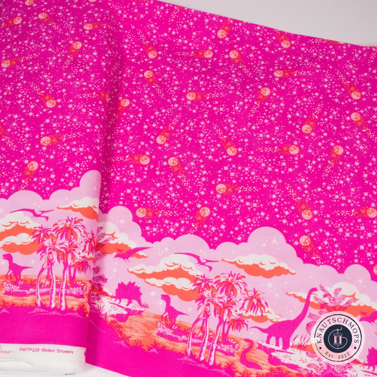 Alles, was Tula Pink als Stoffdesignerin macht, ist darauf ausgerichtet, ihre Kindheitsfantasien auszuleben. Sie versucht, all die Dinge festzuhalten, die wir so leicht loslassen, wenn wir erwachsen werden – wie Staunen, Verwunderung, kreative Logik und Freude. Normalerweise sind Dinosaurier-Stoffe für Kinder gedacht, und sie weiß nicht, wer das entschieden hat, aber sie stimmt dem überhaupt nicht zu. Roar! ist ihre fantasievolle Interpretation von schicken Dinosauriern für diejenigen, die einen Fuß fest in der Fantasie verankert haben. Tula Pinks prähistorische Landschaft ist voller Details und Farben. Hier findet man einen eleganten T-Rex in einem Formschnitt, einen Triceratops, der auf einem windigen Parkweg spazieren geht, fröhliche kleine versteckte Raptoren in einem zierlichen Damast und Pterodaktylen, die sich Zeit nehmen, um an den Blumen zu riechen. Es ist nur ein ganz normaler fauler Nachmittag im Garten mit den Giganten der Erdgeschichte.Angaben zum Hersteller bzw. Importeur: