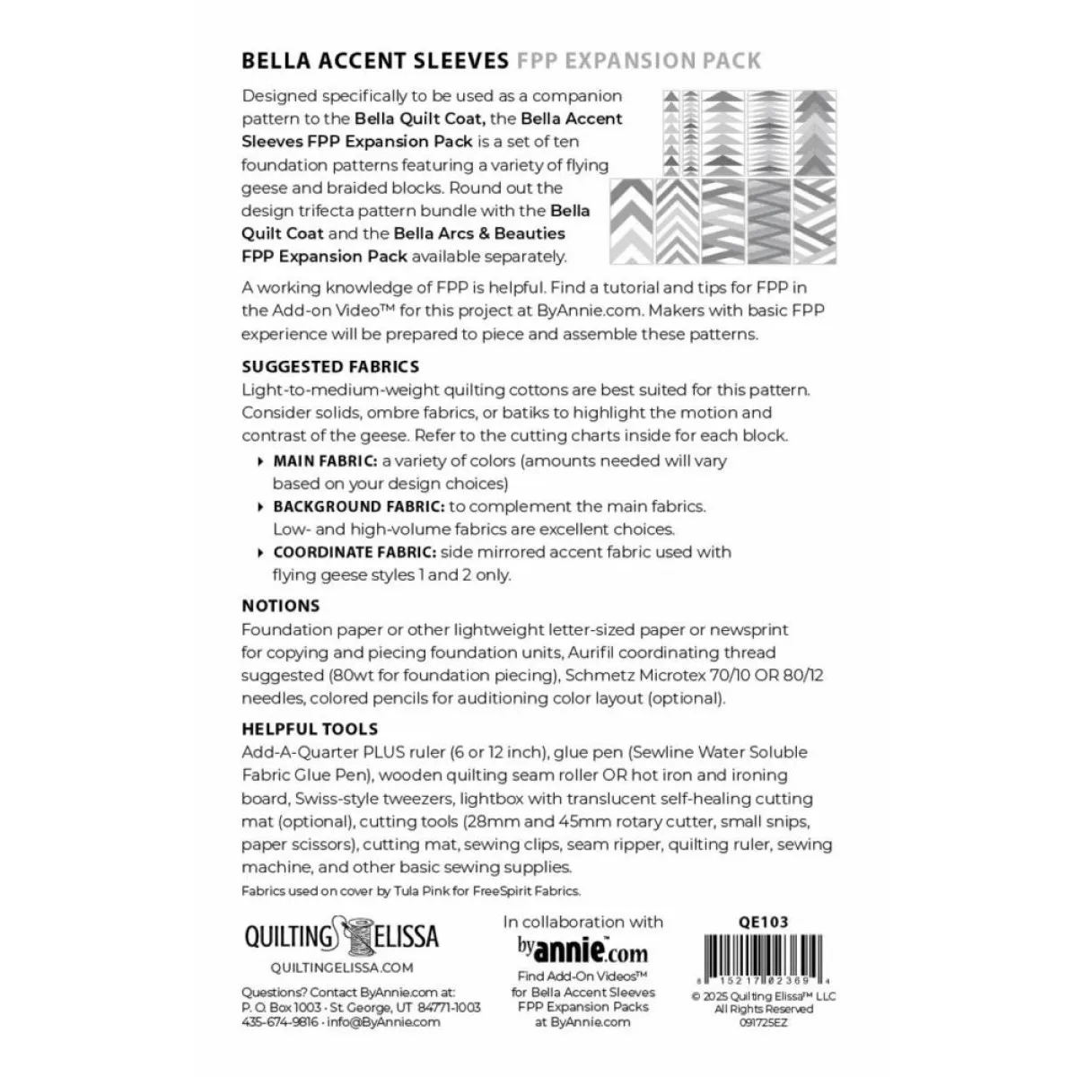 Das Bella Accent Sleeves FPP (Foundation Paper Piecing) Erweiterungspaket wurde speziell dafür entwickelt, als Begleitmuster für den Bella Quilt Coat verwendet zu werden.