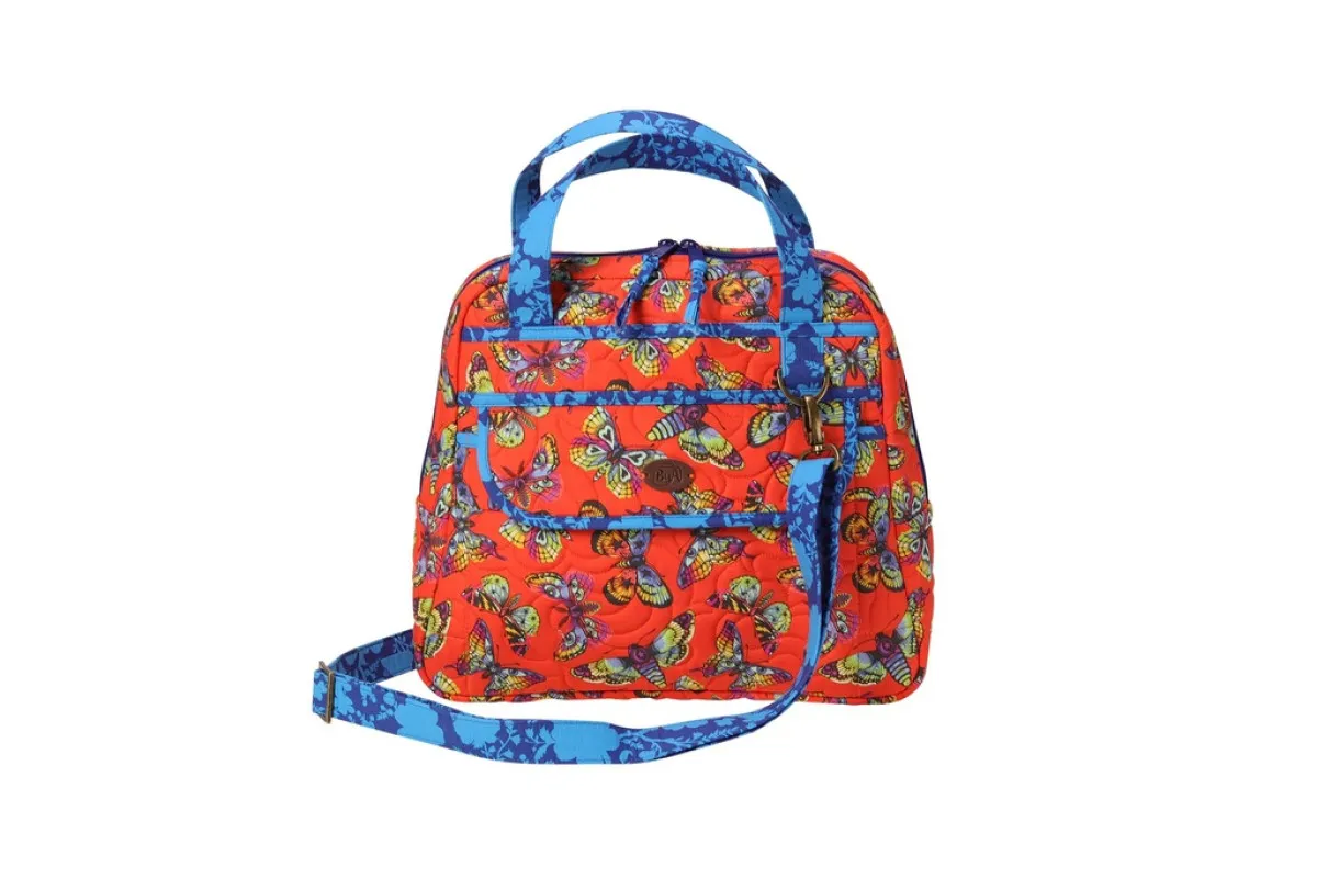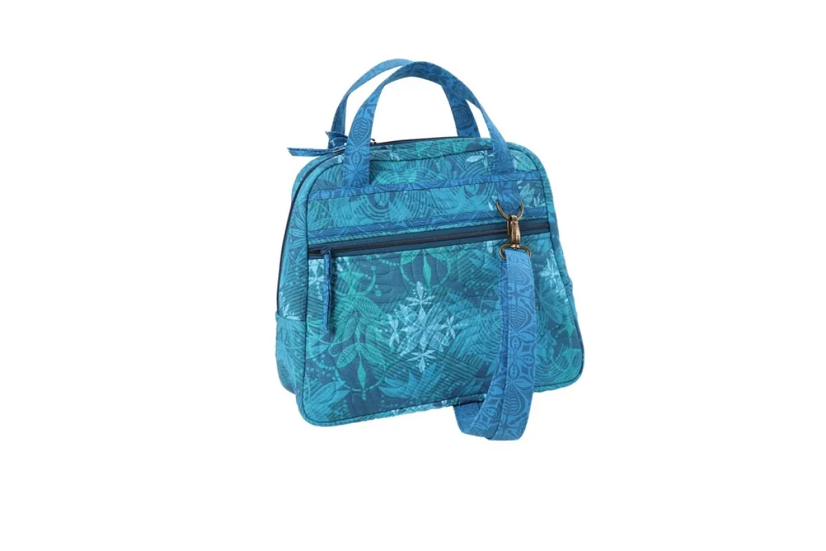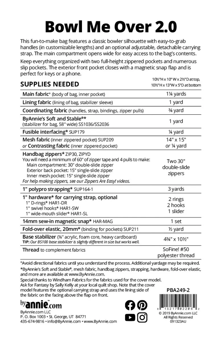 Diese Tasche mit klassischer Bowler-Silhouette macht richtig Spaß beim Nähen. Sie verfügt über gut greifbare Tragegriffe und einen verstellbaren, abnehmbaren Schultergurt. Das Hauptfach lässt sich weit öffnen, sodass du bequem auf den Inhalt der Tasche zugreifen kannst.