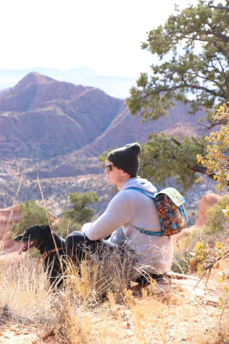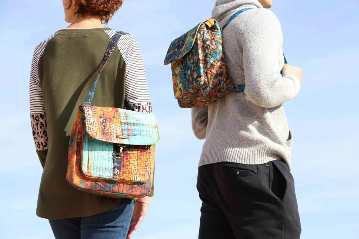 Switchback ist dafür entworfen, aus unterschiedlichen Stoffen genäht zu werden, die miteinander kombiniert werden können – ideal für einen lebendigen Color-Block-Stil. Dieses Design zeigt sich sowohl auf der Fronttasche und der Klappe als auch auf der Rückseite der Tasche.